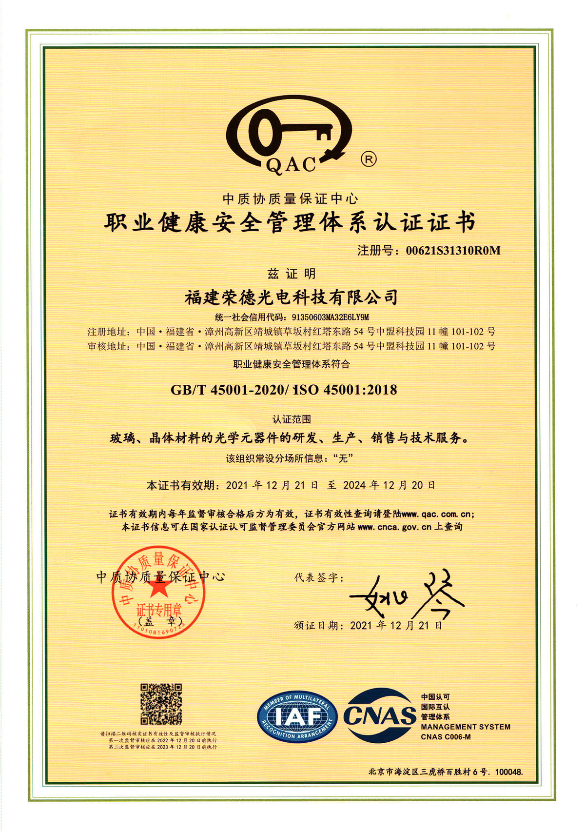 xingkong星空光电通过ISO45001职业健康与安全管理体系认证和 ISO14001环境管理体系认证